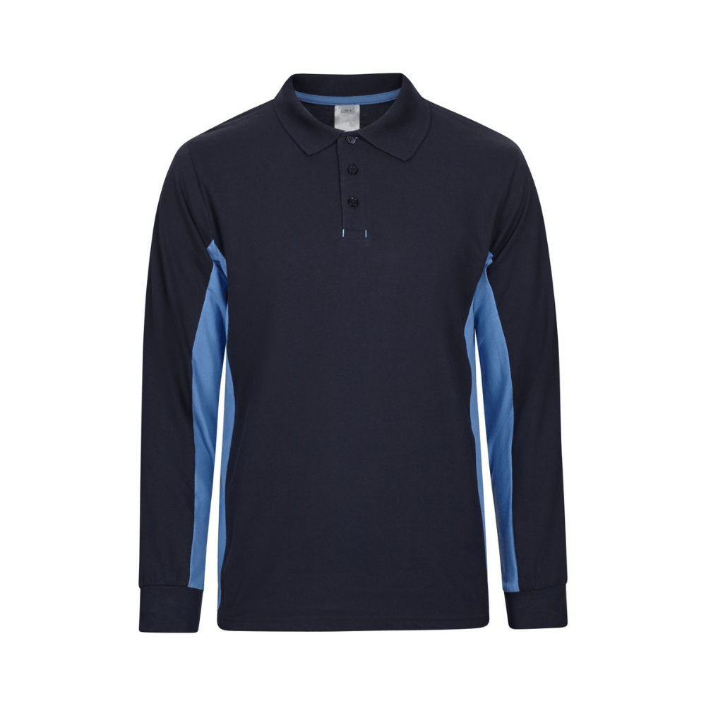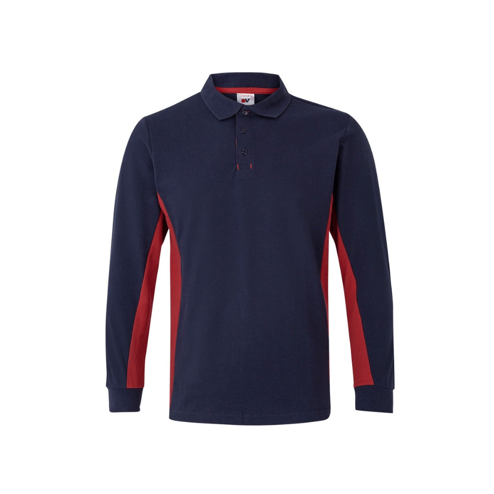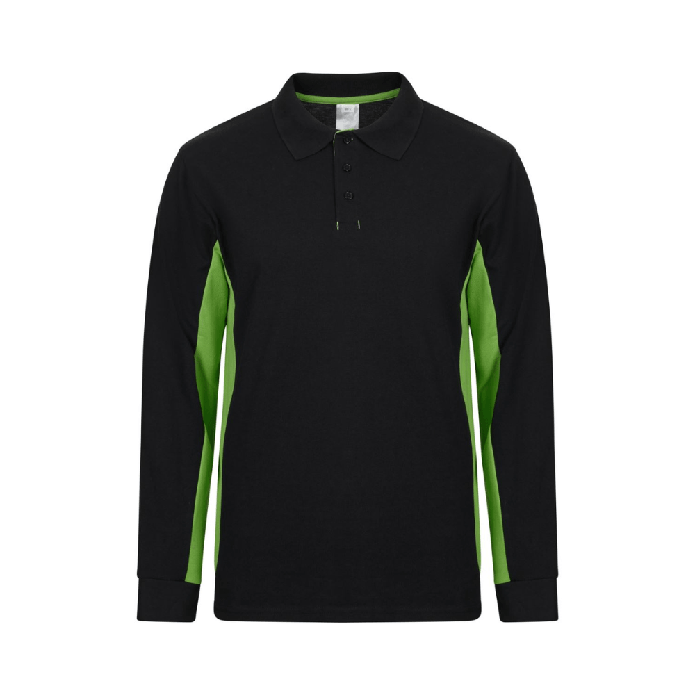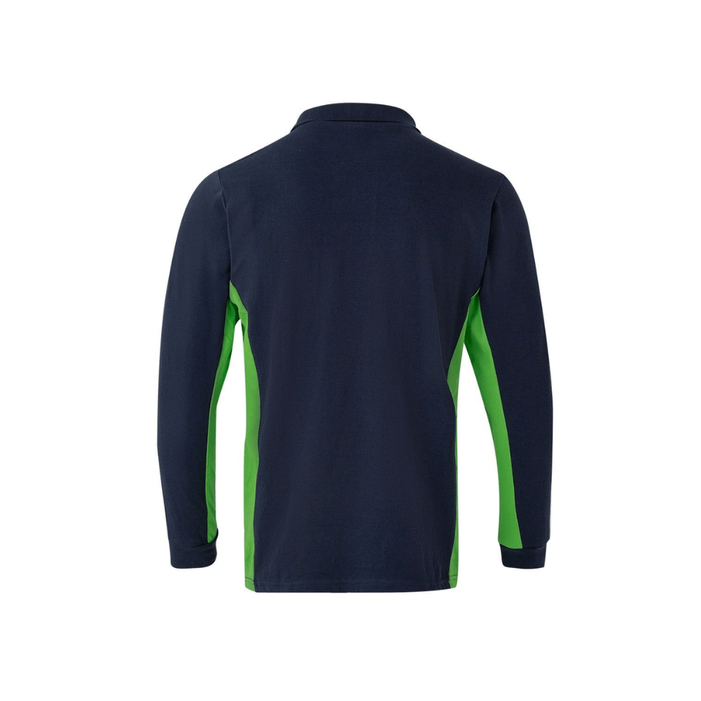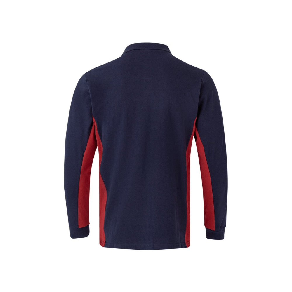 Polo de trabajo bicolor de manga larga con detalles en contraste y tejido cómodo.