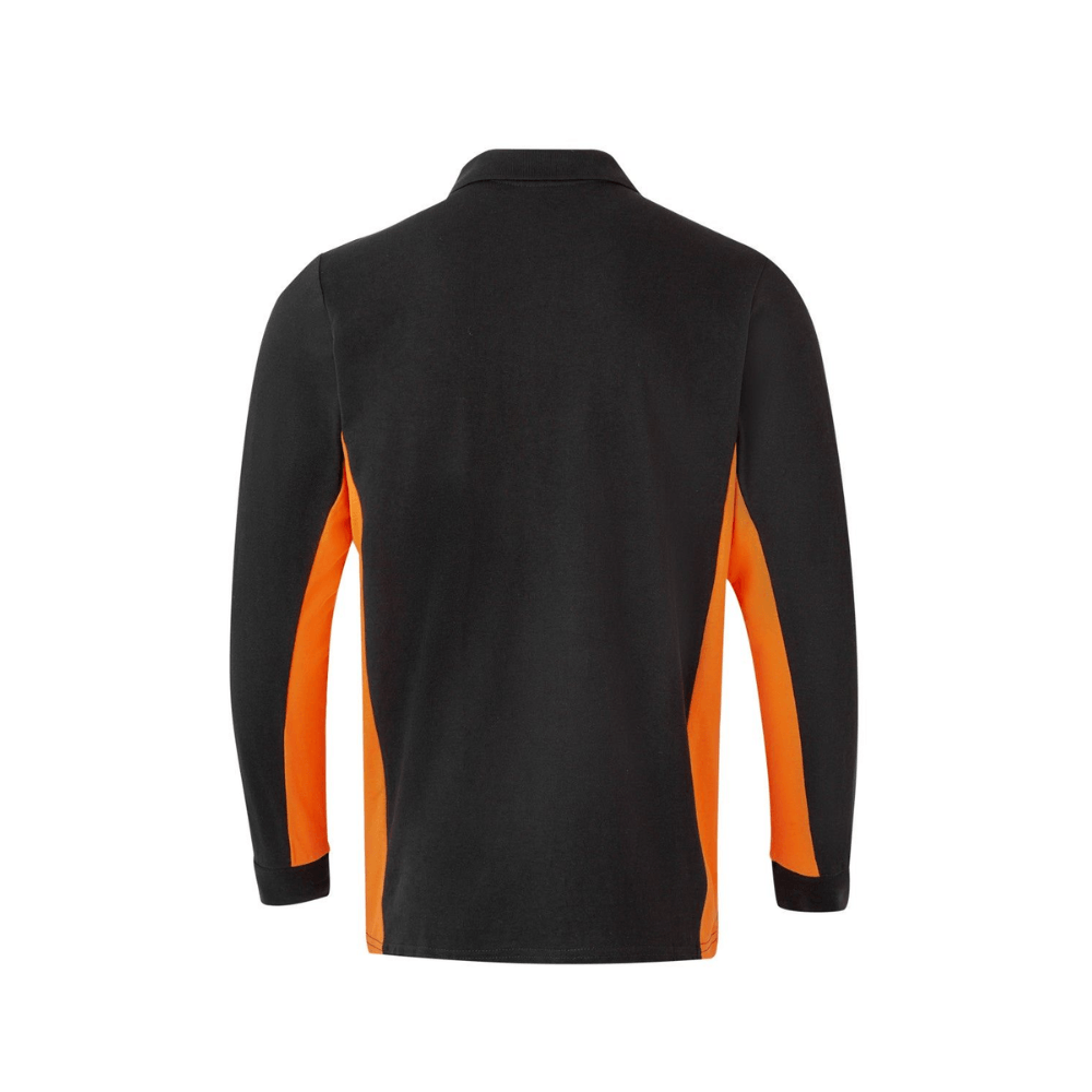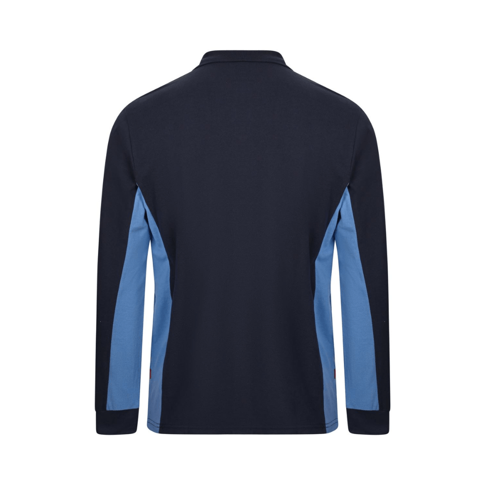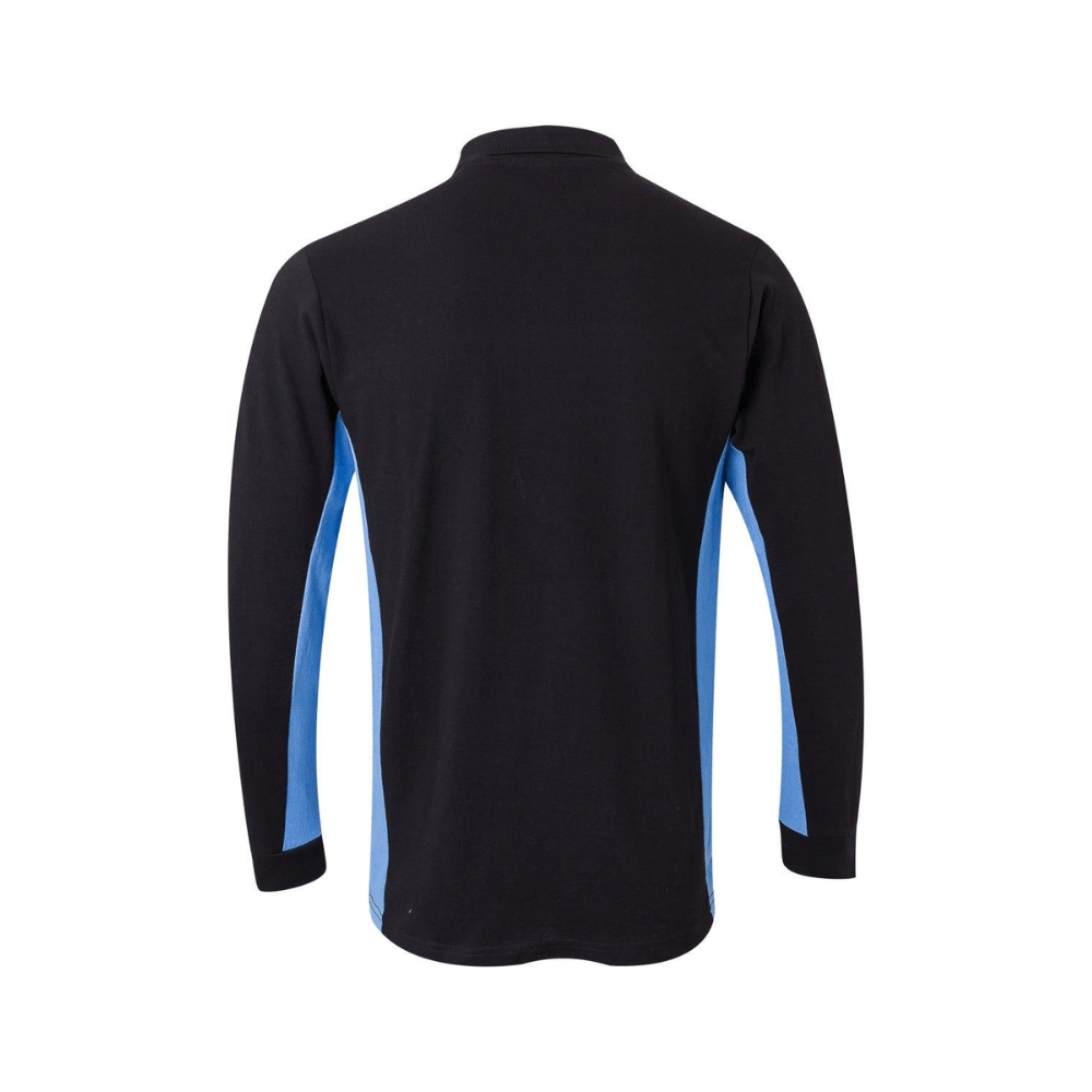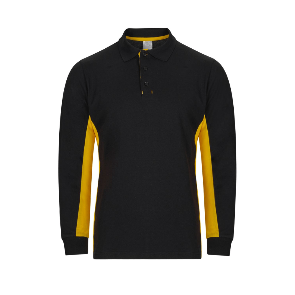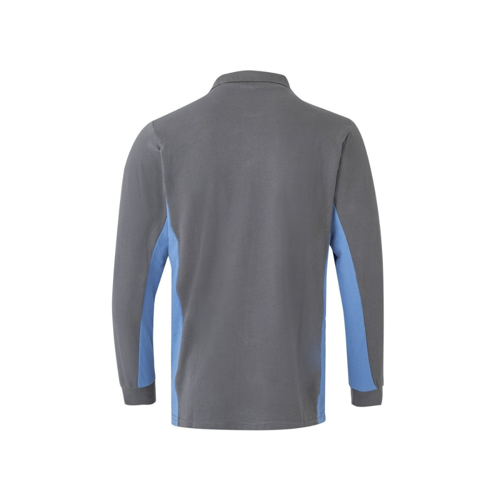 Polo de trabajo bicolor de manga larga con detalles en contraste y tejido cómodo.