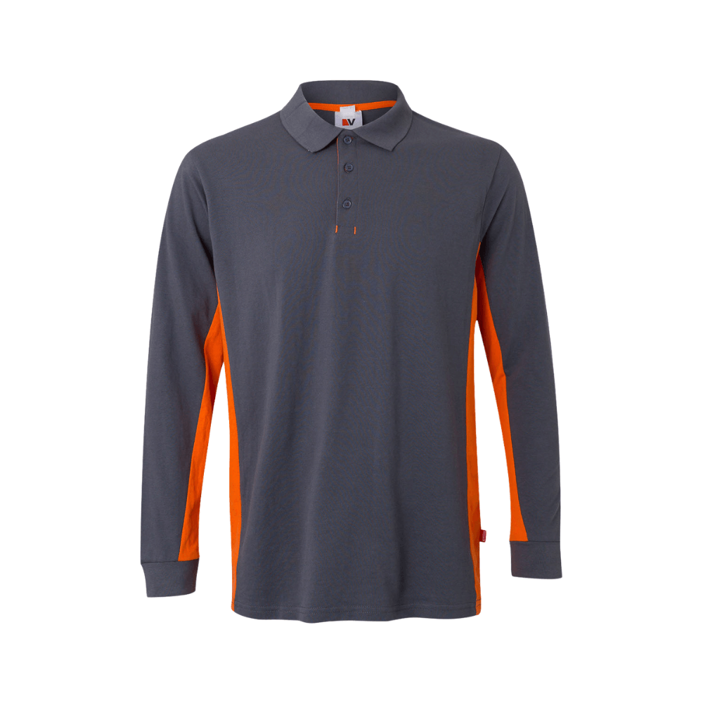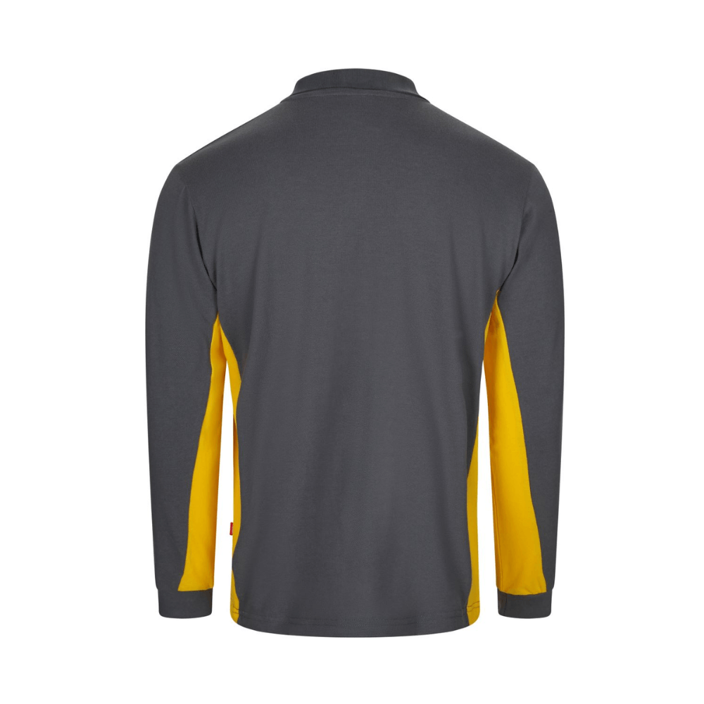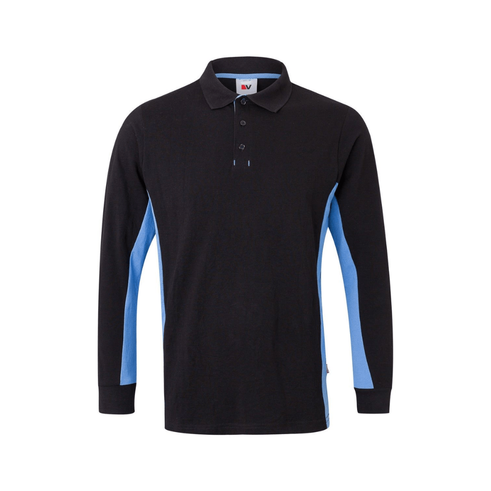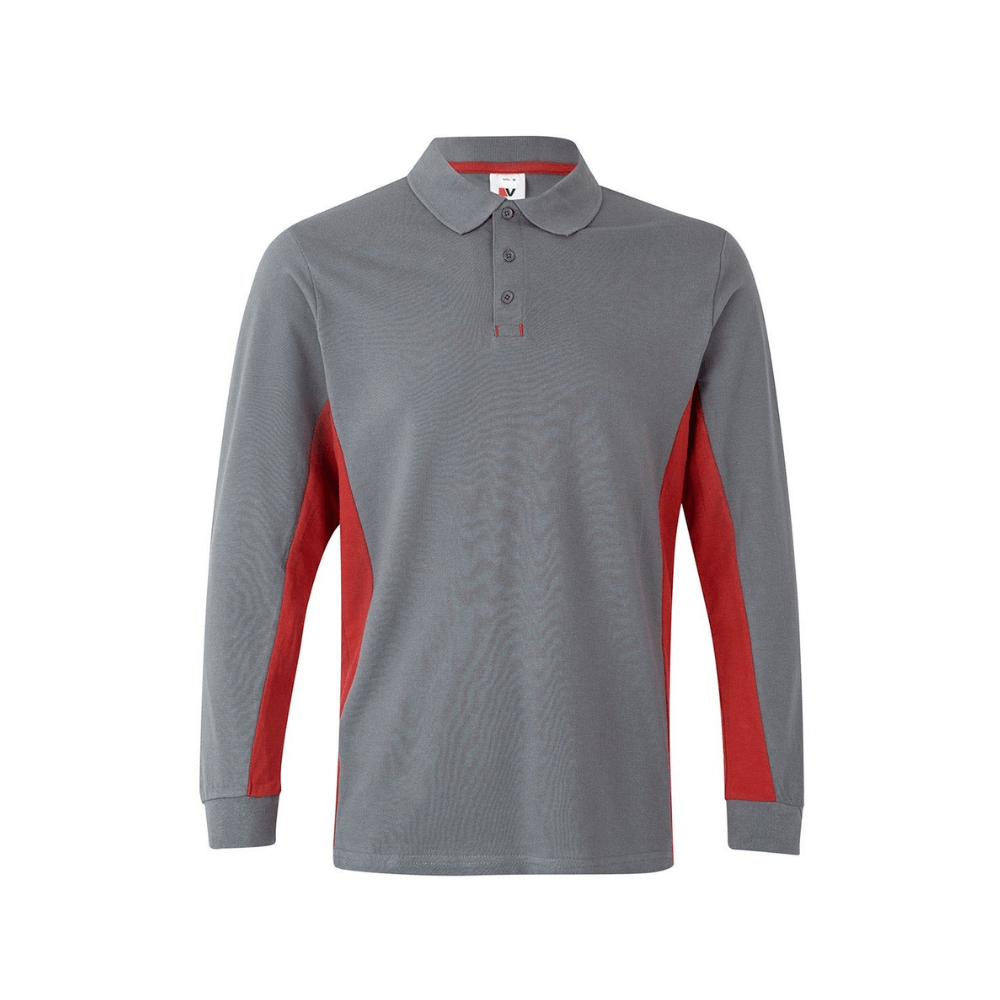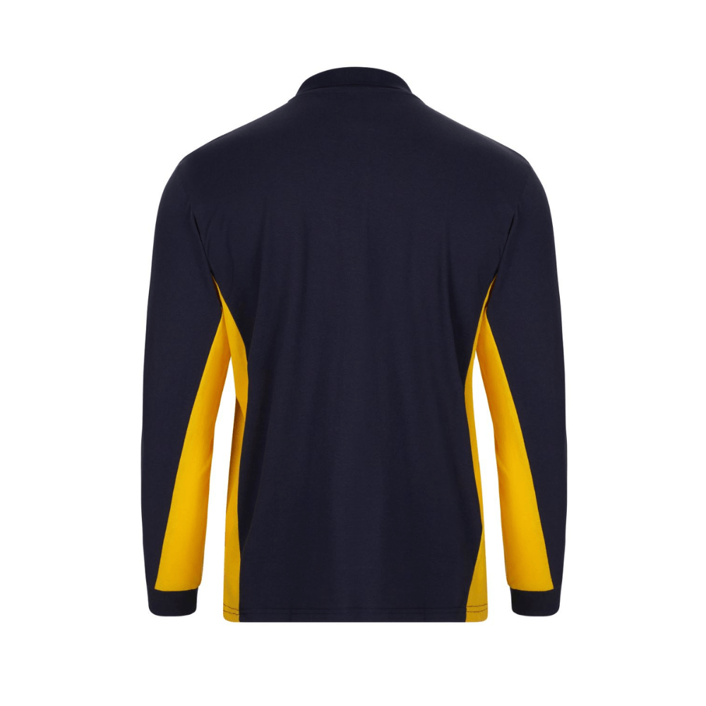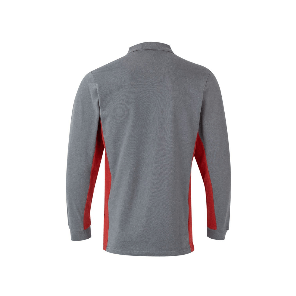 Polo de trabajo bicolor de manga larga con detalles en contraste y tejido cómodo.