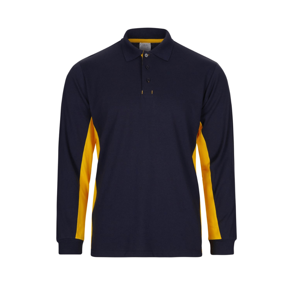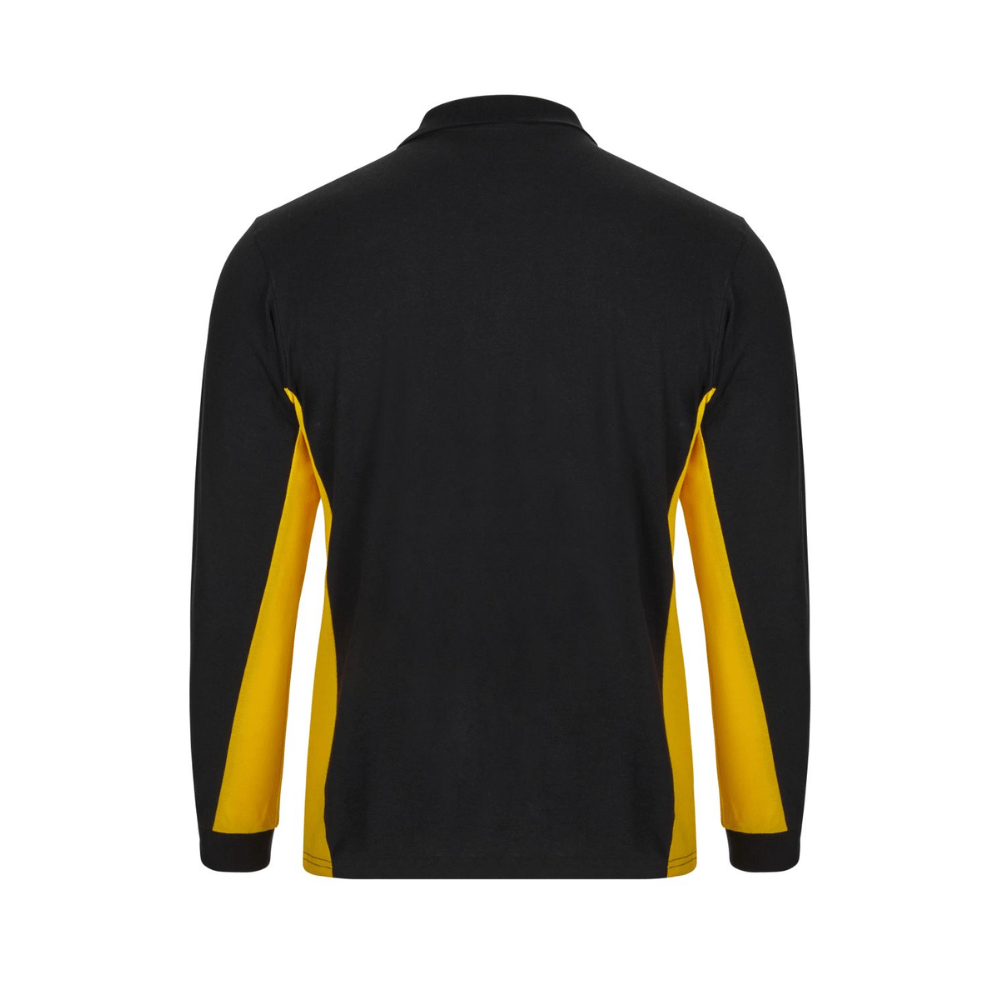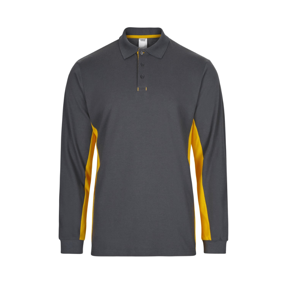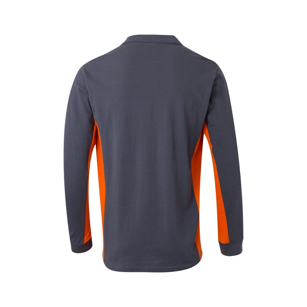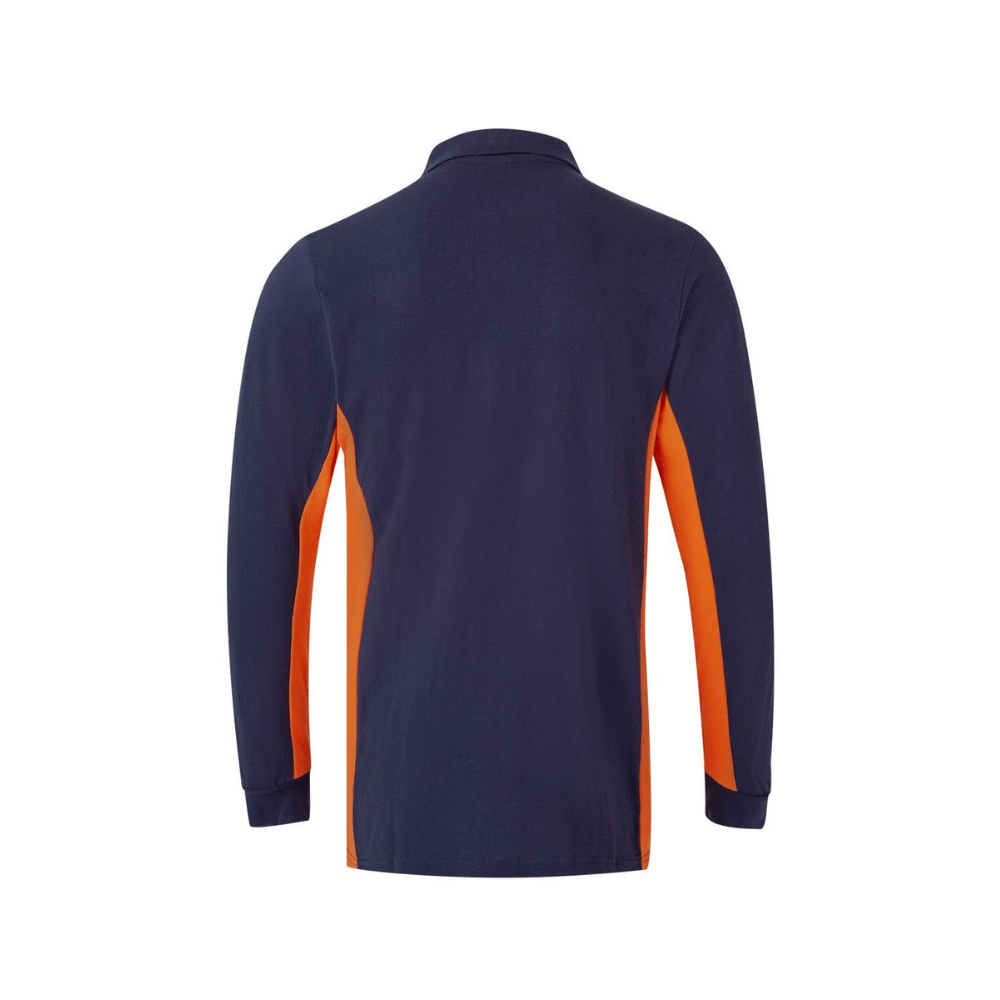 Polo de trabajo bicolor de manga larga con detalles en contraste y tejido cómodo.